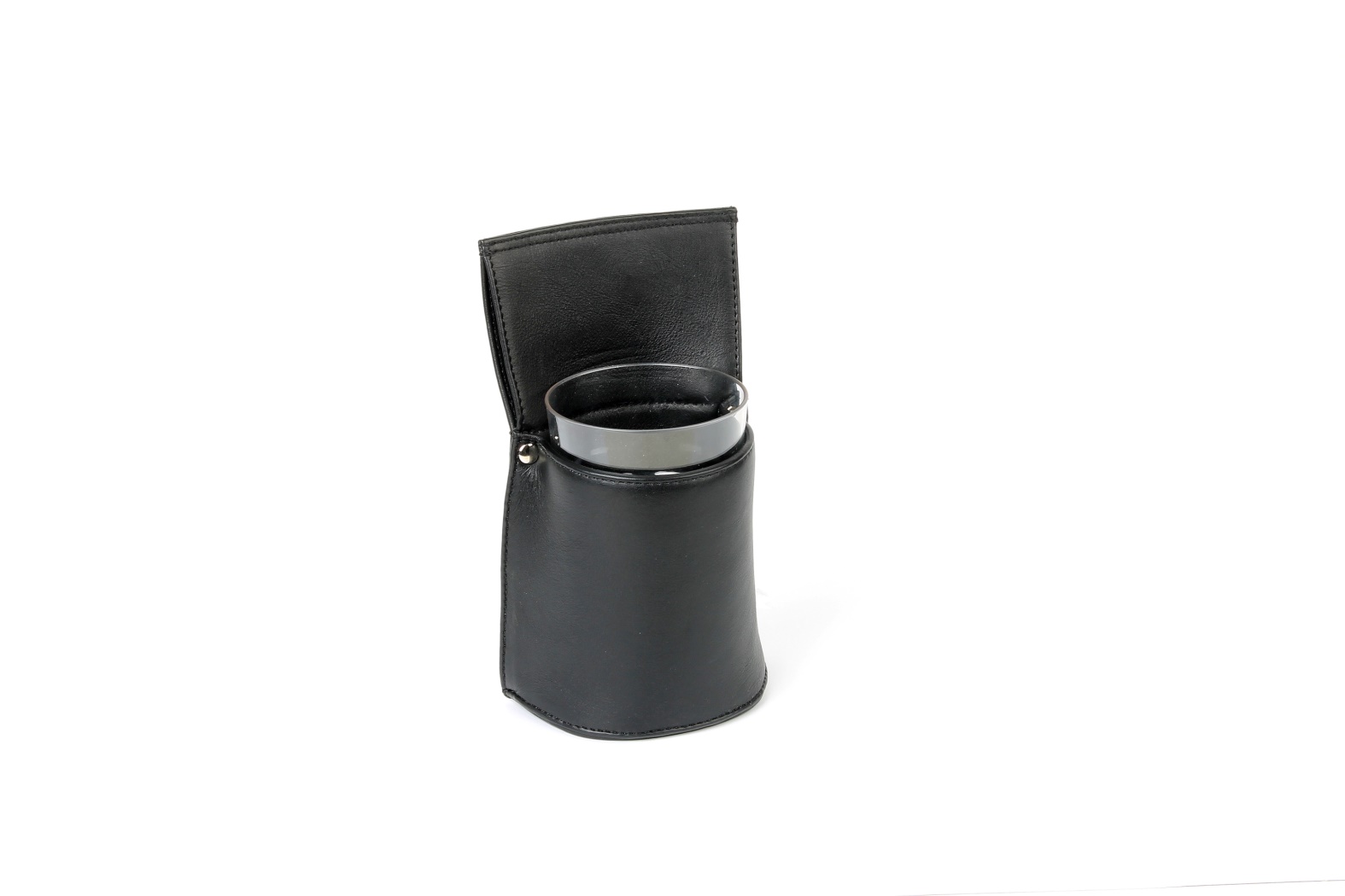Borsello portaspugna in pelle nera - con bicchiere in plastica - OC801