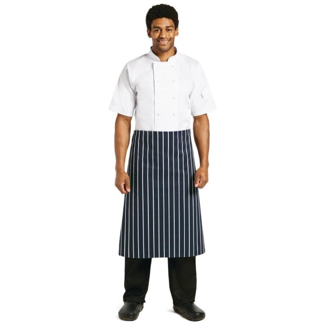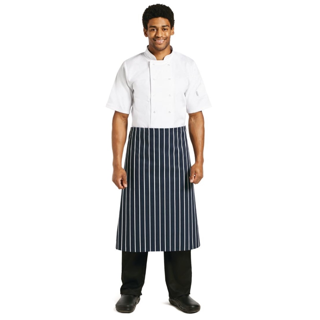 Pantaloni e grembiuli rigati in poliestere / cotone resistenti alla manutenzione e durevoli nel tempo.