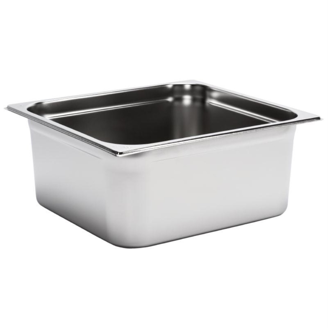 325 x 354 mm. Capacità 150mm (14.8ltr): 14.8Ltr Dimensioni: 150 (h) x 354 (b) x 325 (d) mm Materiale: acciaio inossidabile 304 Acciaio inossidabile 304 Bordi rinforzati impilabile Intercambiabile con la maggior parte dei contenitori Gastronorm