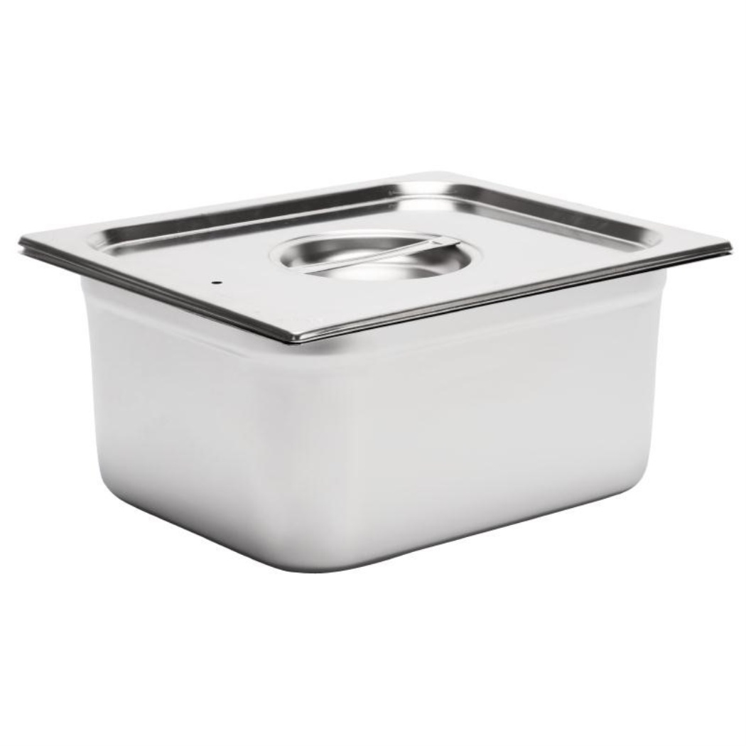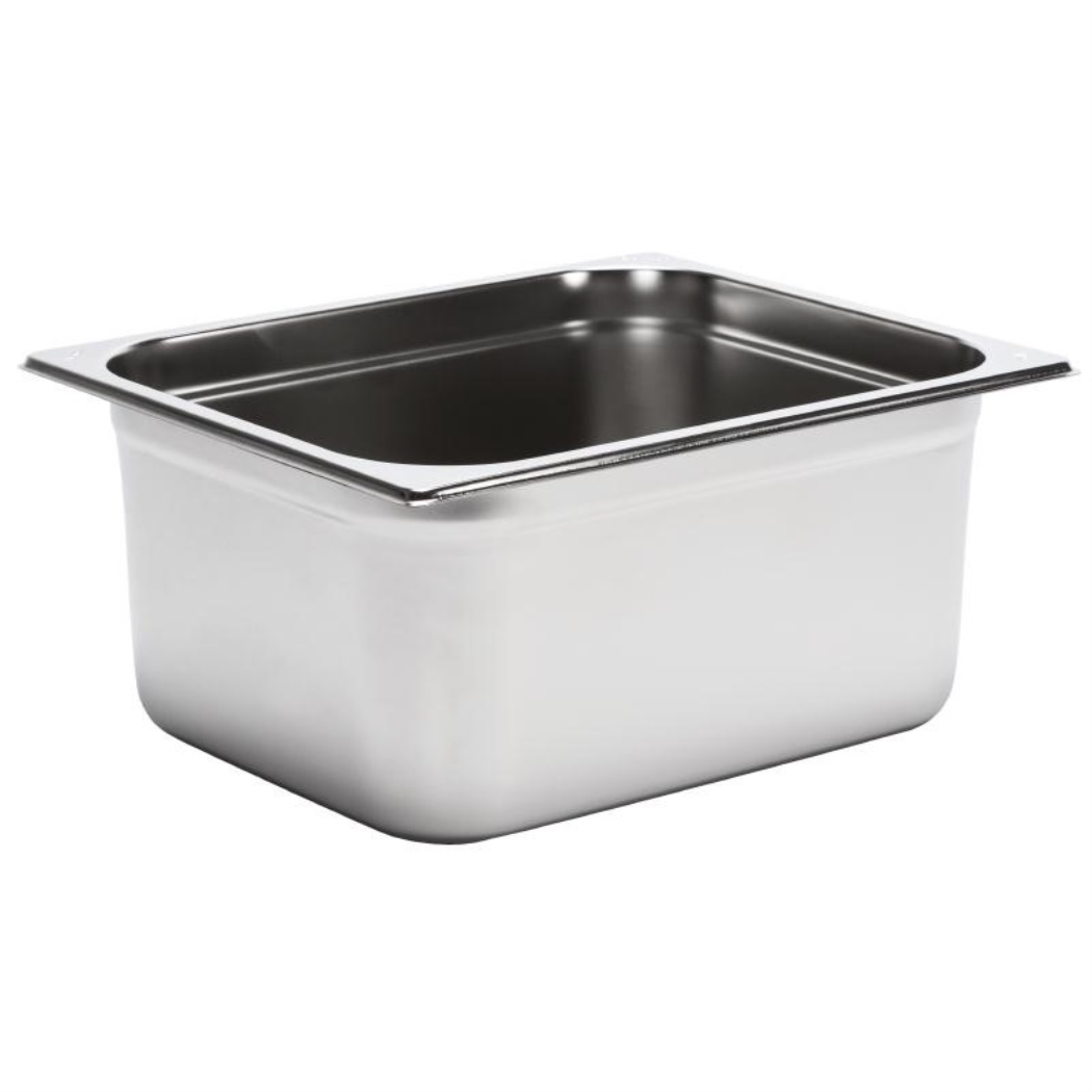 325 x 265 mm. Capacità 150mm (10.8ltr): 10.8Ltr Dimensioni: 150 (h) x 325 (b) x 265 (d) mm Materiale: acciaio inossidabile 304 Acciaio inossidabile 304 Bordi rinforzati impilabile Intercambiabile con la maggior parte dei contenitori Gastronorm