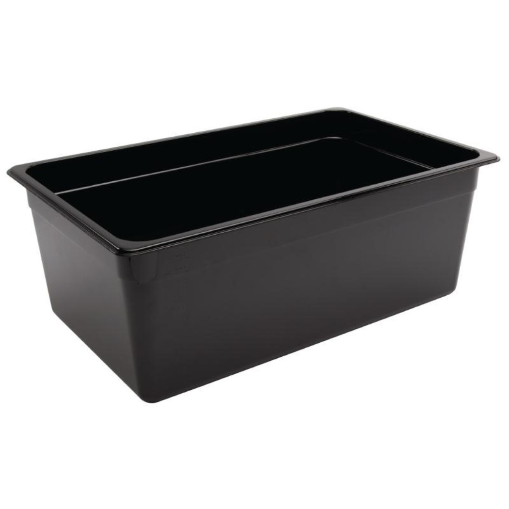 GN 1/1. Nero. 200mm di profondità. Contenuto: 25,6 litri Capacità: 25,6 litri