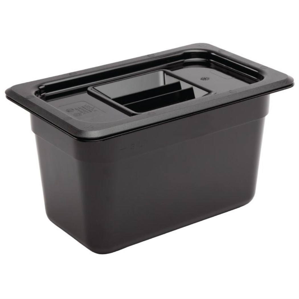 GN 1/4. Nero. 150 mm di profondità. Capacità: 3,7 litri Capacità: 3,7 litri