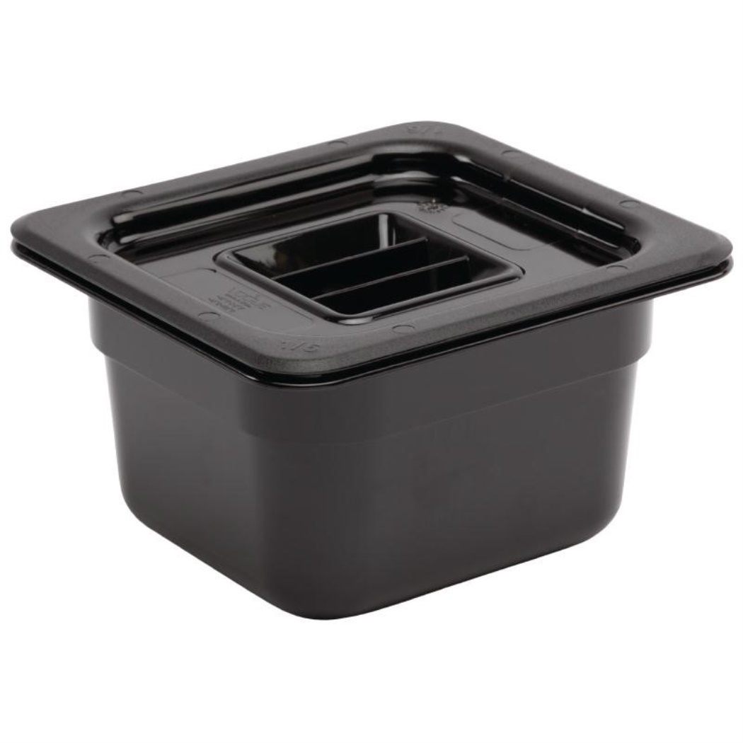 GN 1/6. Nero. 100mm di profondità. Capacità: 1,6 litri Capacità: 1,6 litri