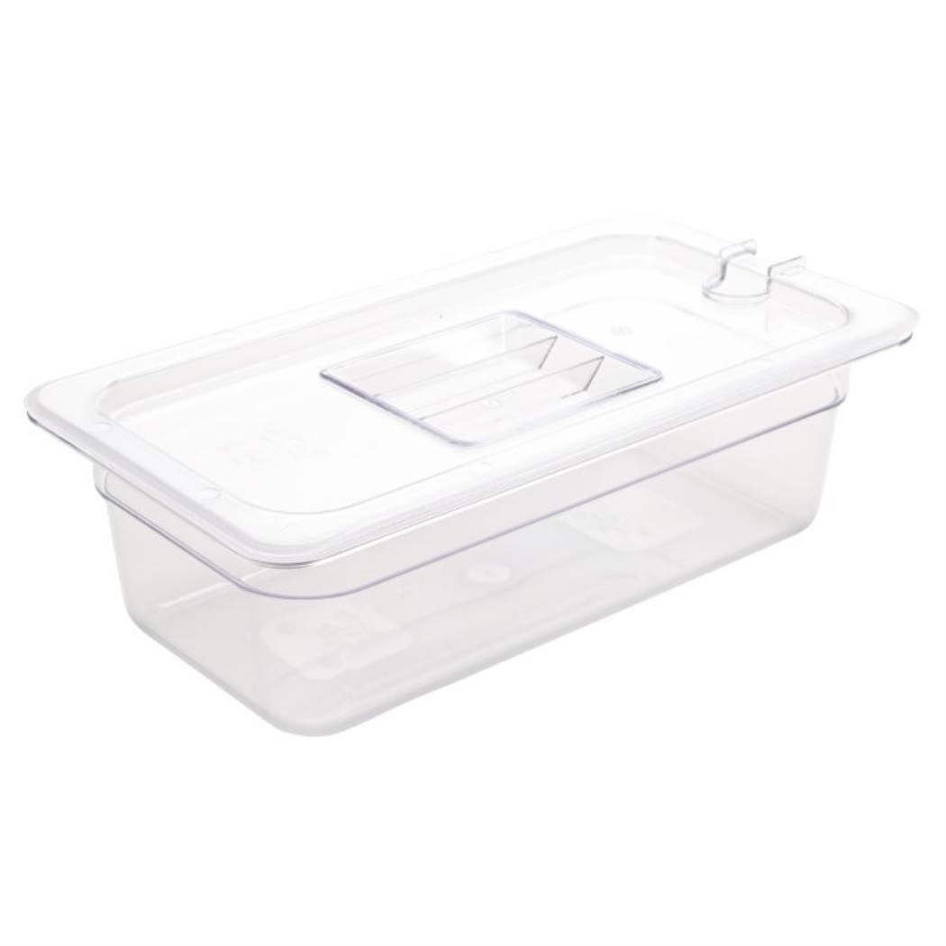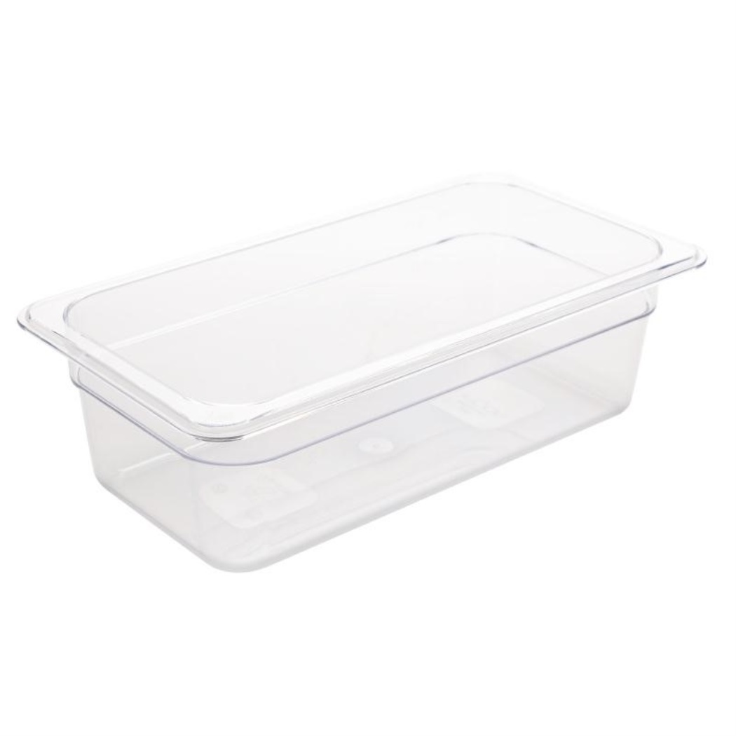 GN 1/3. Trasparente. 100mm di profondità. Volume: 3,8 litri Capacità: 3,8ltr