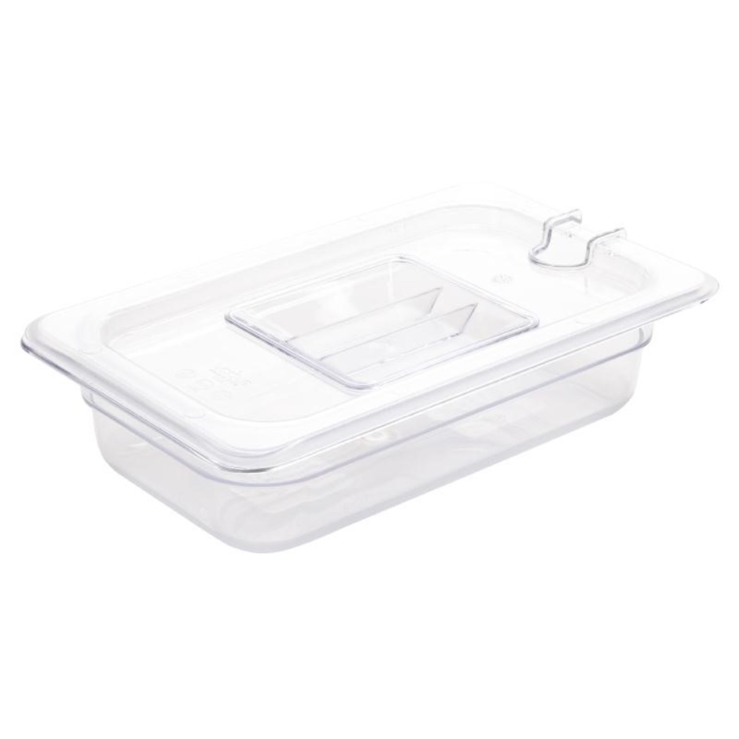GN 1/4. Trasparente. 65 mm di profondità. Capacità: 1,6 litri Capacità: 1,6 litri