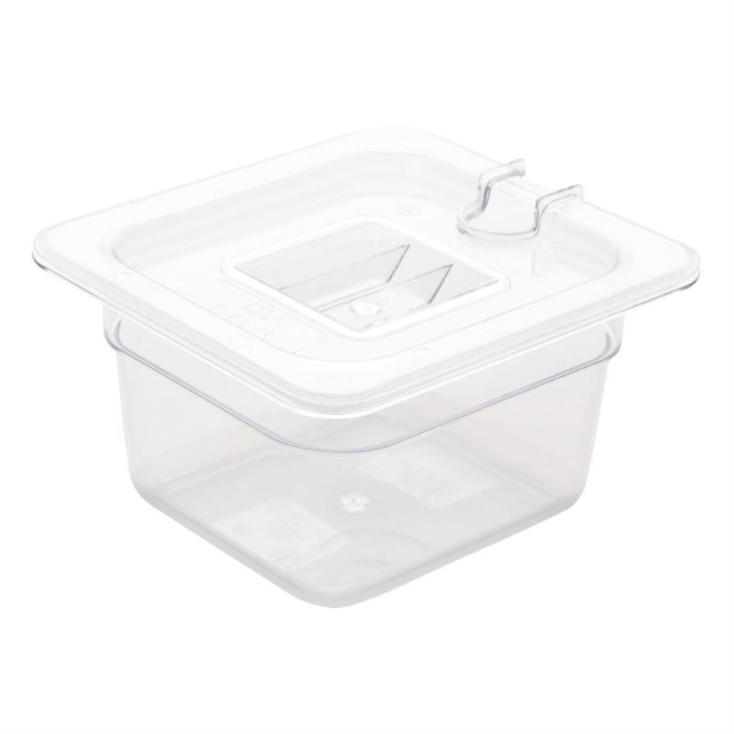GN 1/6. Trasparente. 100mm di profondità. Capacità: 1,7 litri Capacità: 1,7 litri