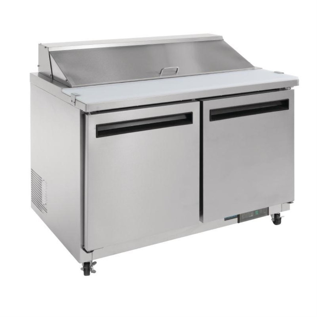 Saladette refrigerate con vano GN. Coperchio esterno in acciaio inox e isolamento in acciaio inossidabile. Controller e display digitale completamente automatici. Consegnato completo di due griglie (42.5x54cm)