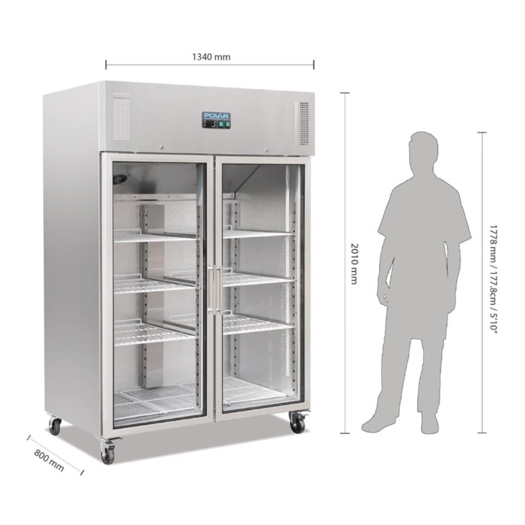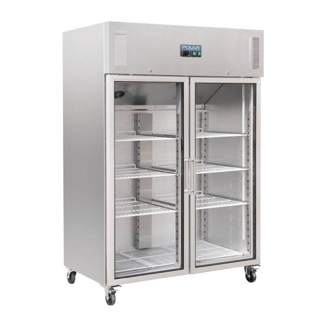 Raffreddatori chiudibili a chiave con porta in vetro. Ideale per, tra gli altri, macellai e fattorie. Controller completamente automatico con display digitale. Dotato di ruote frenate.