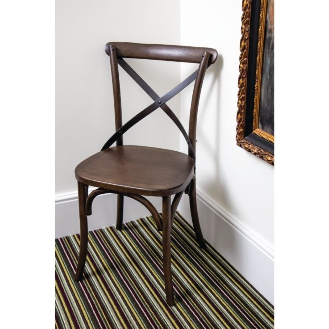 Eleganti sedie in legno vintage, ideali per ristoranti, caffè e bistrot. Sorprendente dallo schienale incrociato.