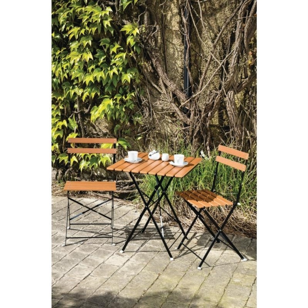 Tavolo da giardino con mobili da giardino e sedie pieghevoli per piccoli spazi. Telaio in acciaio e pannelli di plastica spessi 15 mm per una maggiore resistenza e una facile manutenzione.