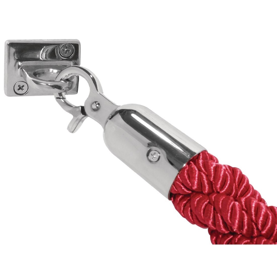 1,50 m di lunghezza, corde di marcatura in morbido velluto. Dotato di estremità cromate in acciaio inox o ottone per il fissaggio a staffa oa palo. Disponibile anche con effetto corda intrecciata.