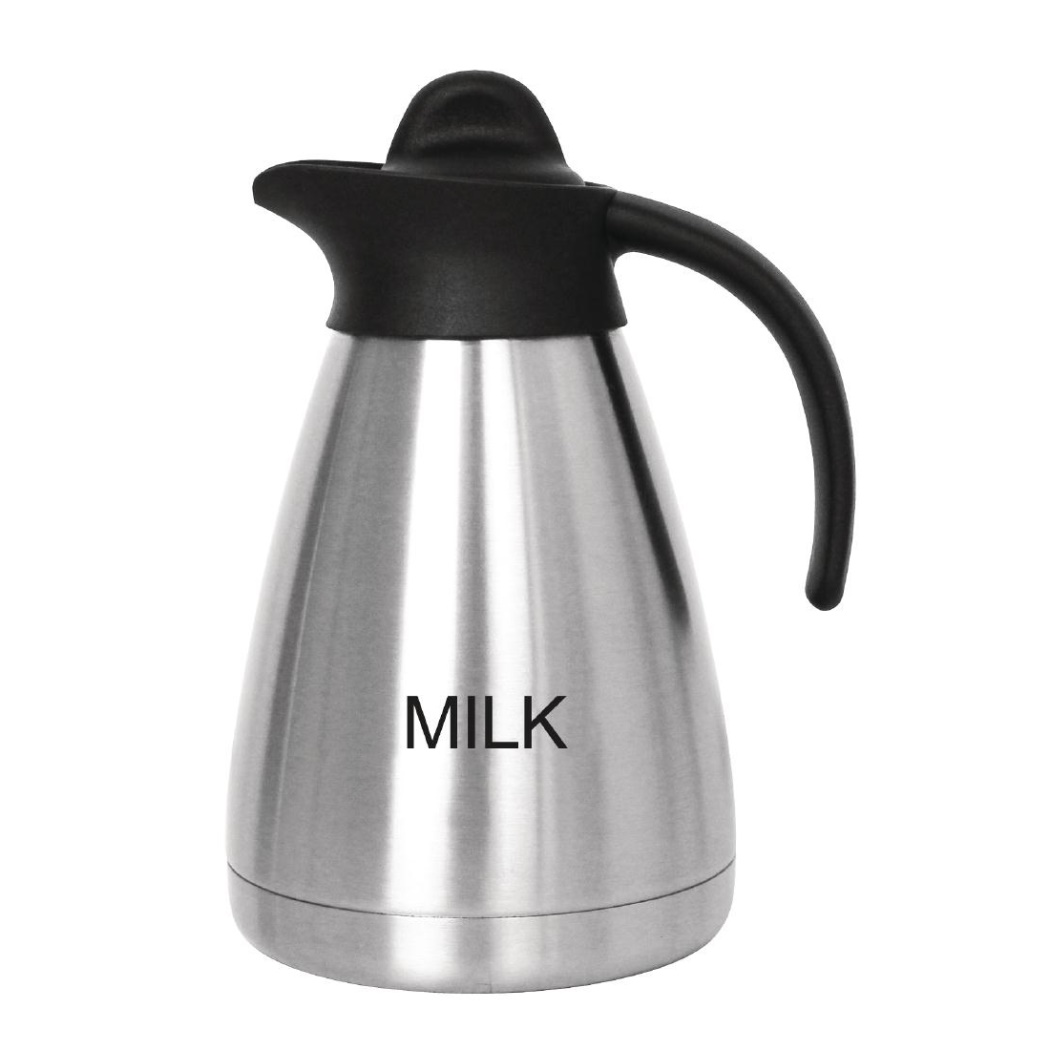 Caraffa con tappo a vite con incisione 'Milk' per un servizio efficiente e veloce.