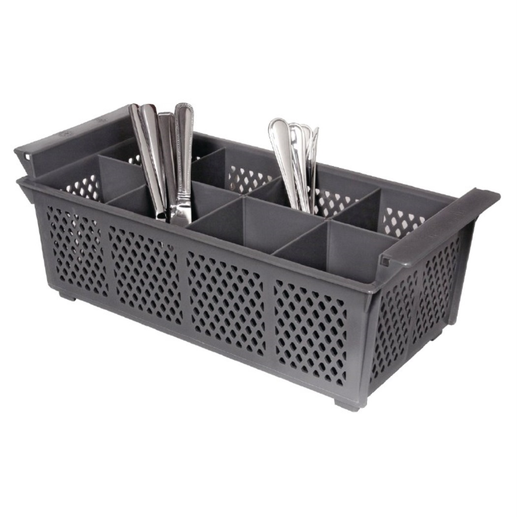 Cestello portaposate in plastica a otto scomparti. Ideale per lavare i piatti. Dimensioni (cm): 13 (h) x 42,5 (b) x 21 (d). Cestello per posate 8 scomparti.