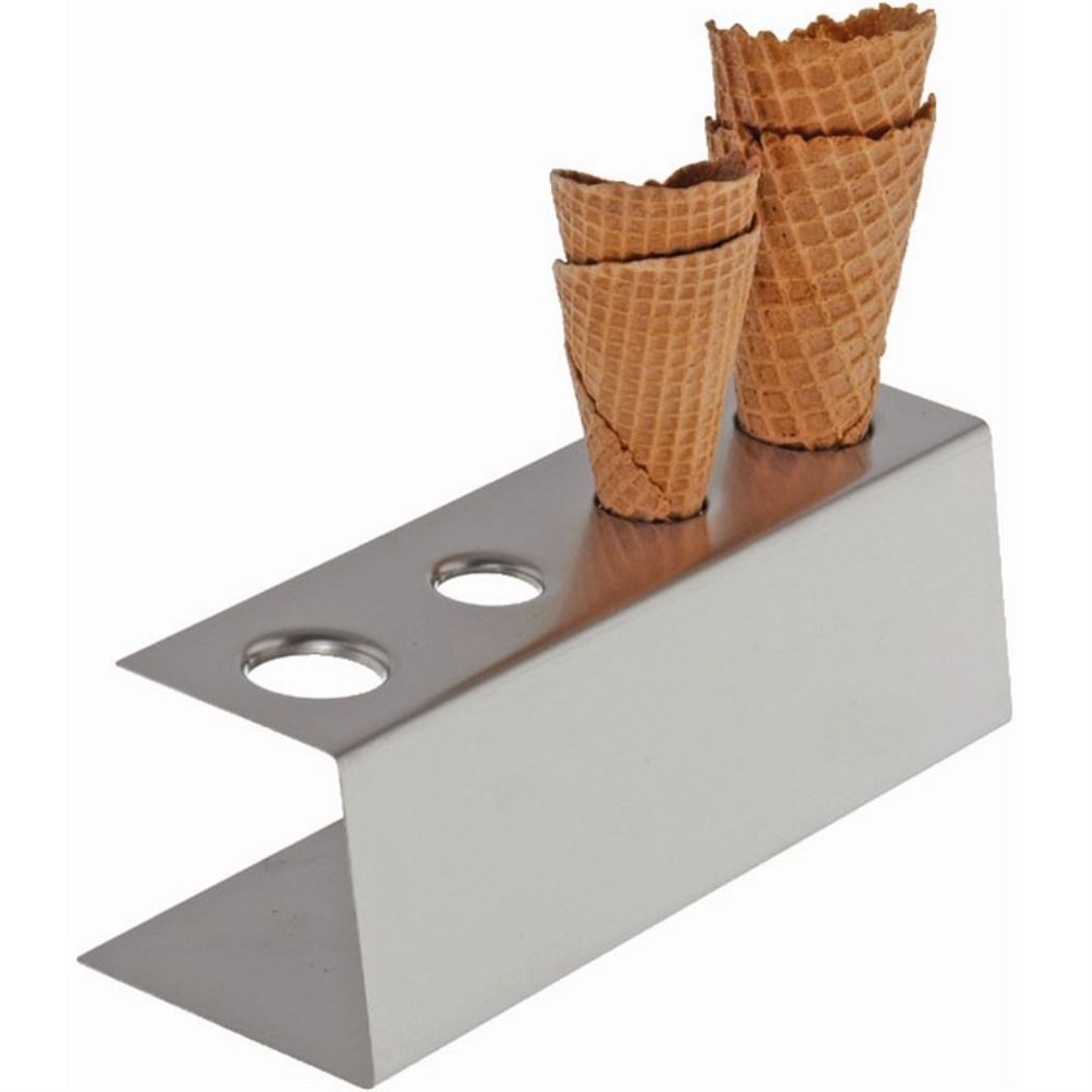 Cono gelato in acciaio inox standard. Dotato di 4 fori. Dimensione: 9 (h) x27 (b) x9,5 (d) cm.
