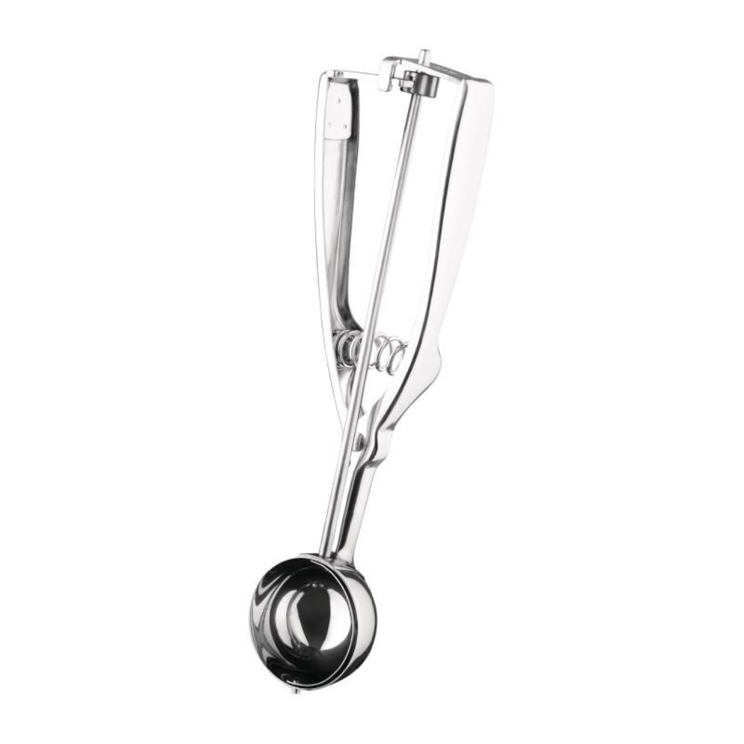 Cucchiaio per porzionatura in acciaio inossidabile di alta qualità. 12 porzioni per litro. Con molla robusta Dimensioni: 6,2 (Ø) cm Materiale: acciaio inossidabile Adatto a tutti i tipi di cibo Ideale per porzionatura