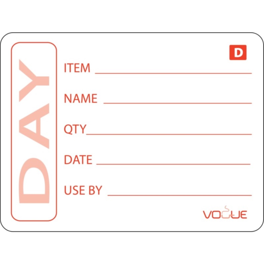 Adesivo alimentare solubile per indicare chiaramente la data di scadenza del cibo preparato. Migliora lo standard in cucina. Rende rapidamente visibile ciò che non è più utilizzabile. Dimensioni adesivo 50x75mm. Rotolo di 250 pezzi.