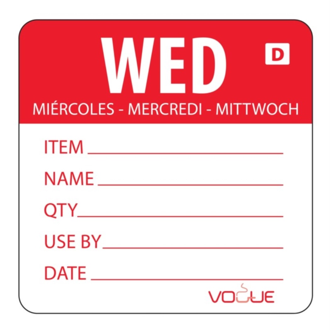 Etichette giorno solubile per etichette alimentari Vogue mercoledì rosso