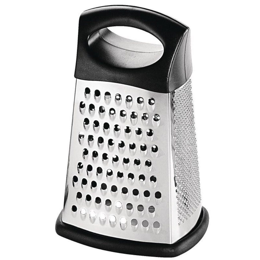 Grattugia 4 volte in acciaio inossidabile. Altezza totale 25 cm inclusa maniglia.