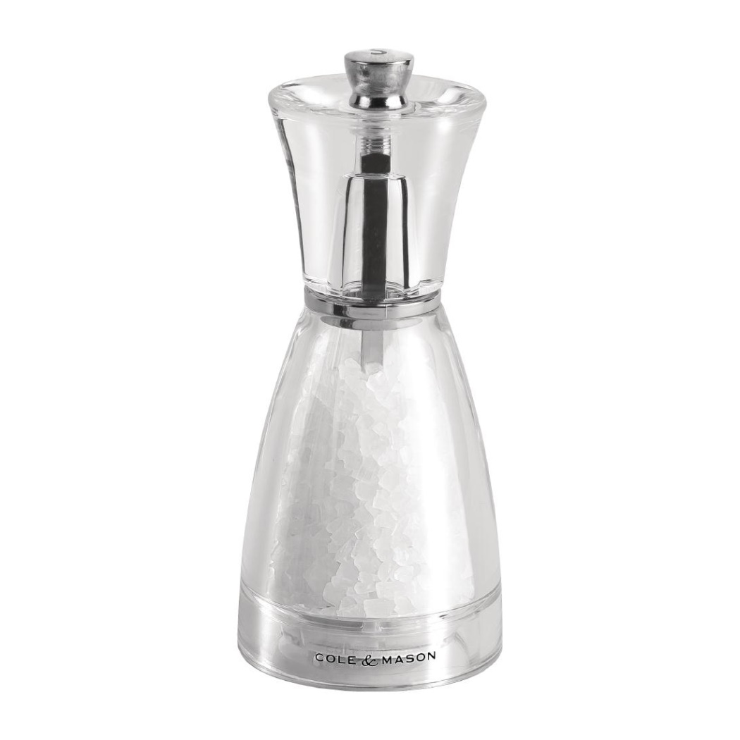 Acrilico trasparente. Garanzia a vita sul meccanismo di macinazione. Il meccanismo ? regolabile per la macinazione fine e grossolana. Altezza di 12,5 cm.