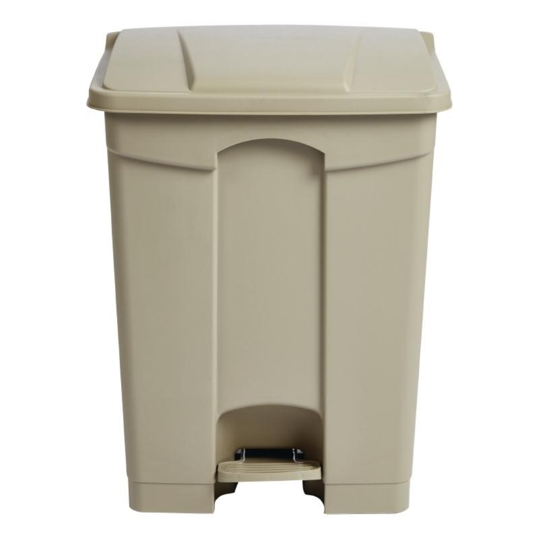 Pattumiere in polipropilene solido con funzionamento a pedale igienico. Dotato di ganci per il fissaggio di sacchi della spazzatura e coperchio ermetico per prevenire gli odori.
