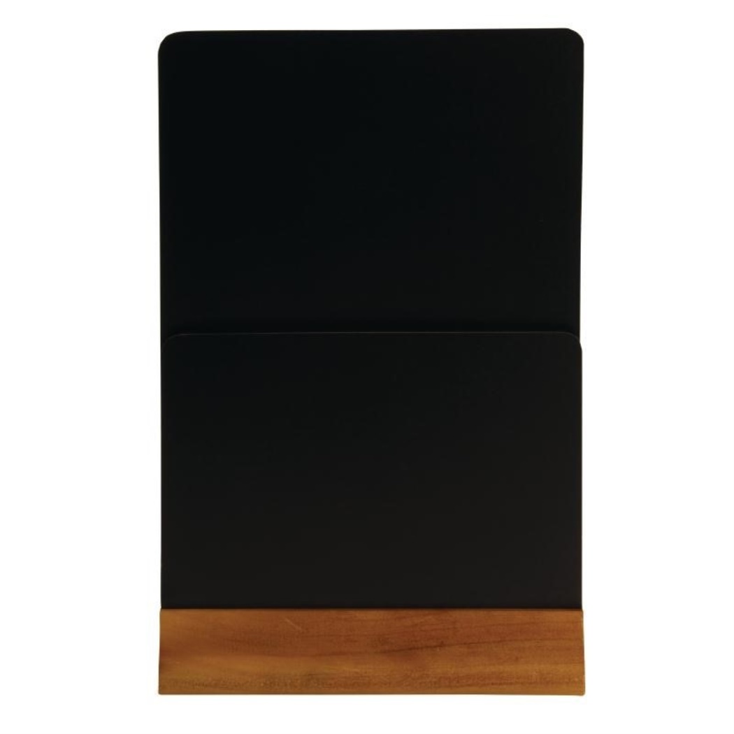 Come porta lavagna è possibile utilizzare anche il titolare del menu su due lati. Dimensioni: 32,5 (h) x 21 (b) x 5,5 (d) cm Dimensioni: 32,5 (h) x 21 (b) x 5,5 (d) cm Piede di legno