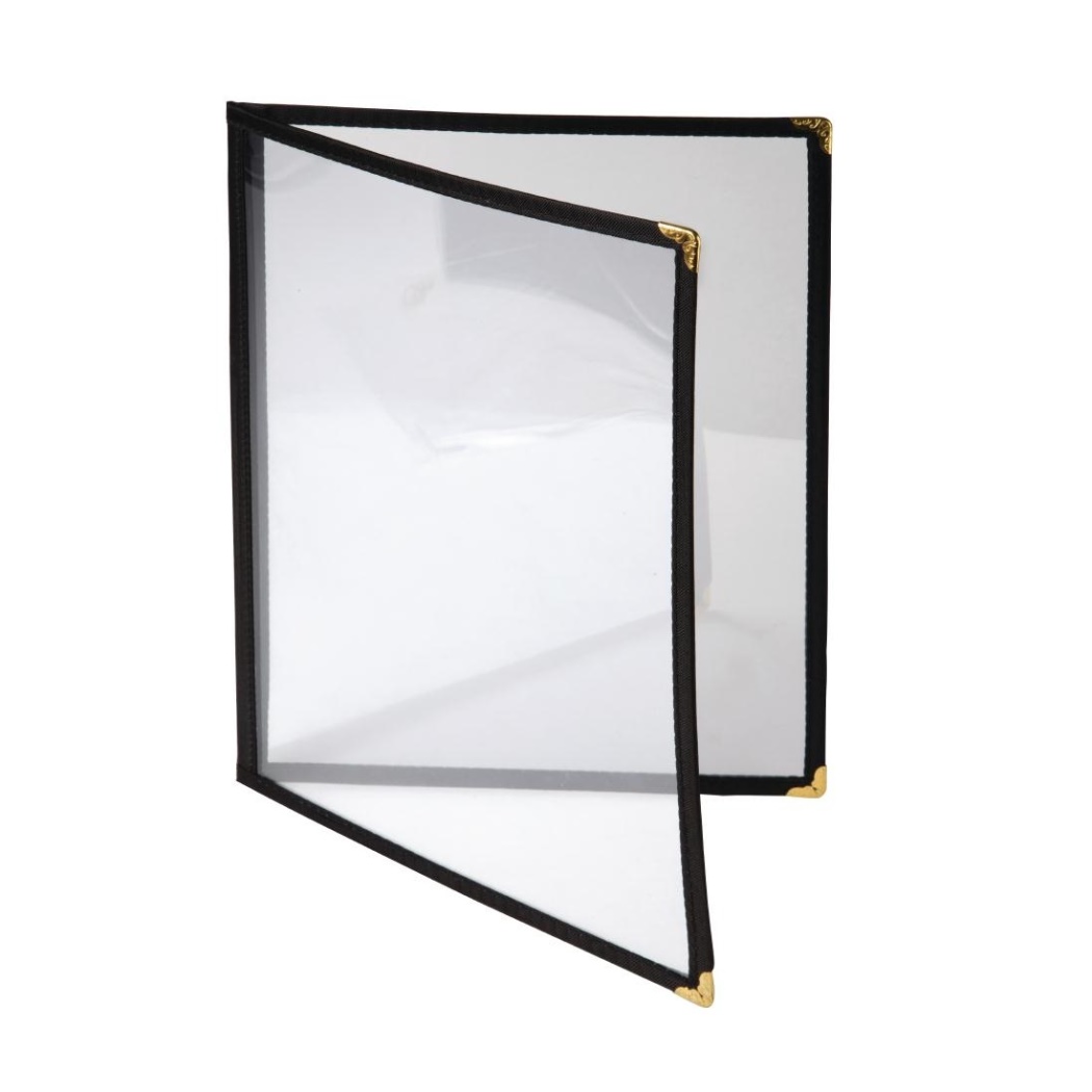 Basta posizionare i menu dietro la plastica e riceverai una presentazione pratica e professionale. Dotato di angoli in metallo per una maggiore durata. Disponibile in formato A4 e A5. Vengono consegnati senza menu. A4 nero 4 pagine.