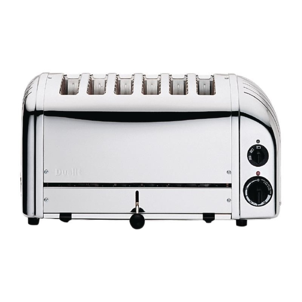 6 slot. 195 tagli p / h. Acciaio inossidabile Getti in alluminio Dimensioni: 22 (h) x 46 (b) x 21 (d) cm