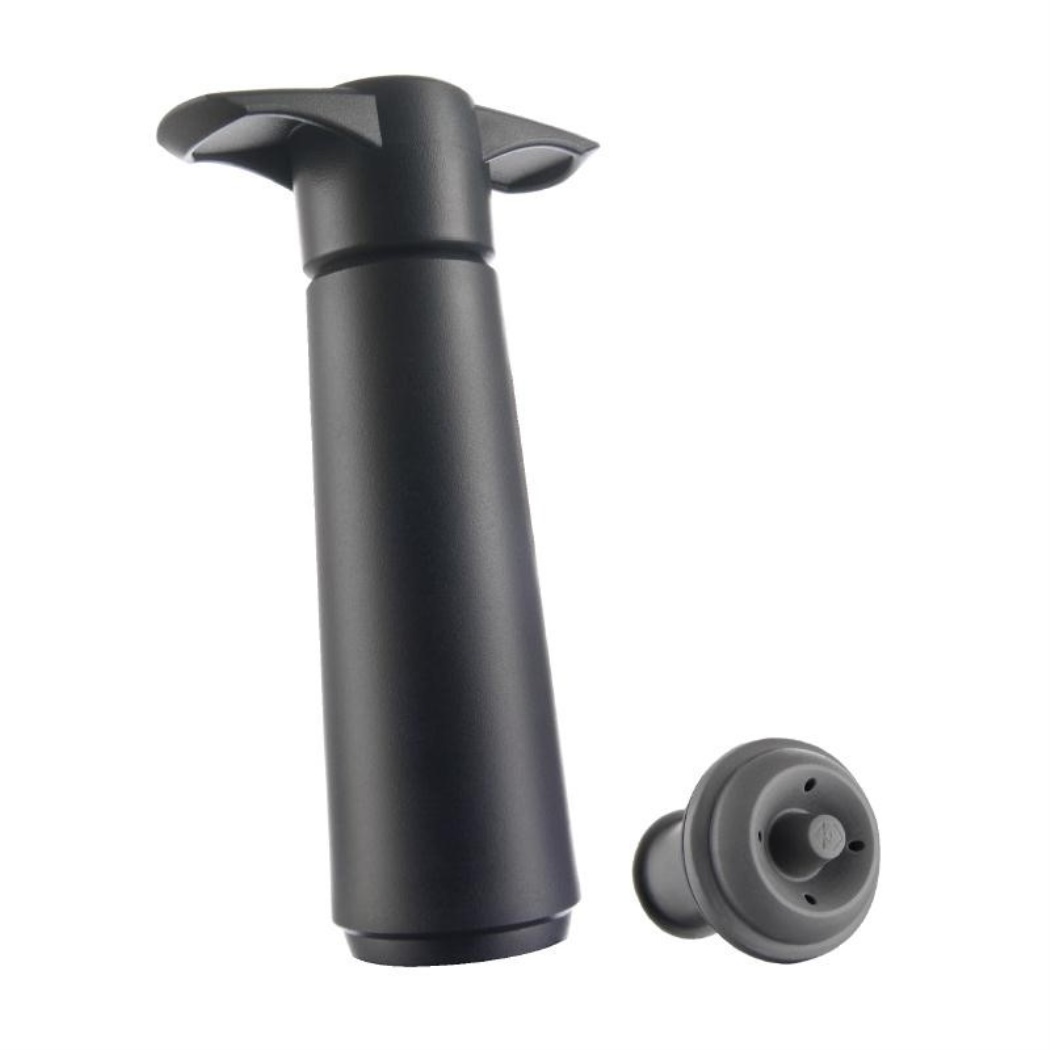 Tenere aperte le bottiglie di vino pi? a lungo. L'indicatore scatta quando viene raggiunto il vuoto. Non adatto a vini frizzanti. Include due tappi.