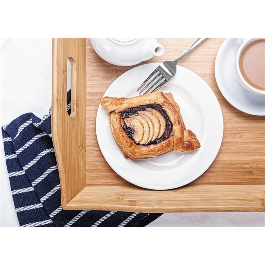 Vassoio in bambù leggero, resistente e duraturo, ideale per il servizio in camera.7.6 (h) x58.4x38cm. Dimensioni: 7.6 (h) x 58.4 (b) x 7.6 (d) cm