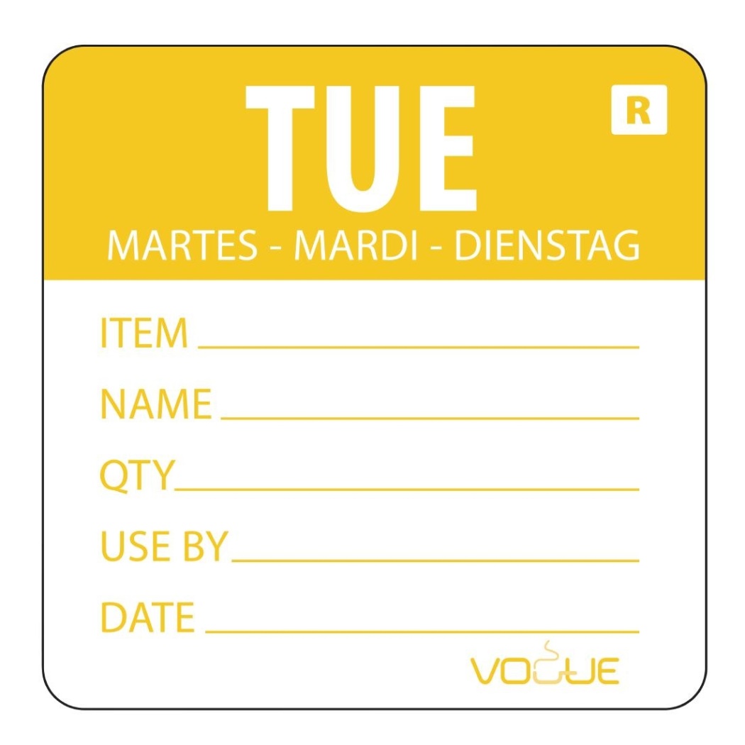 Etichette di sicurezza alimentare con codifica a colori corrispondenti al tuo sistema di rotazione giorno per settimana. Vedi a colpo d'occhio quando il cibo è stato preparato. Facile da rimuovere, non lascia residui. Disponibile in rotoli singoli o in una serie di 7 rotoli, uno per ogni giorno. Dimensioni adesivo: 5 x 6 cm.