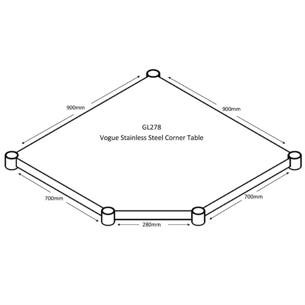 Elemento angolare da tavolo da lavoro in acciaio inox Vogue 70 cm