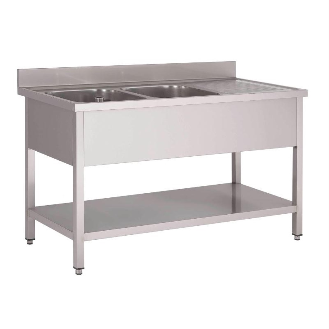 Lavello doppio Gastro M in acciaio inox con supporto e piastra di fondo 160 x 70 x 85 cm