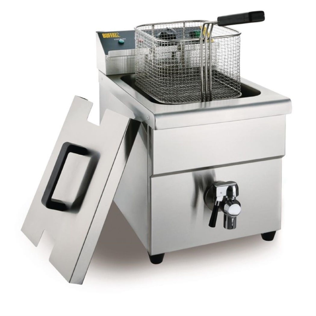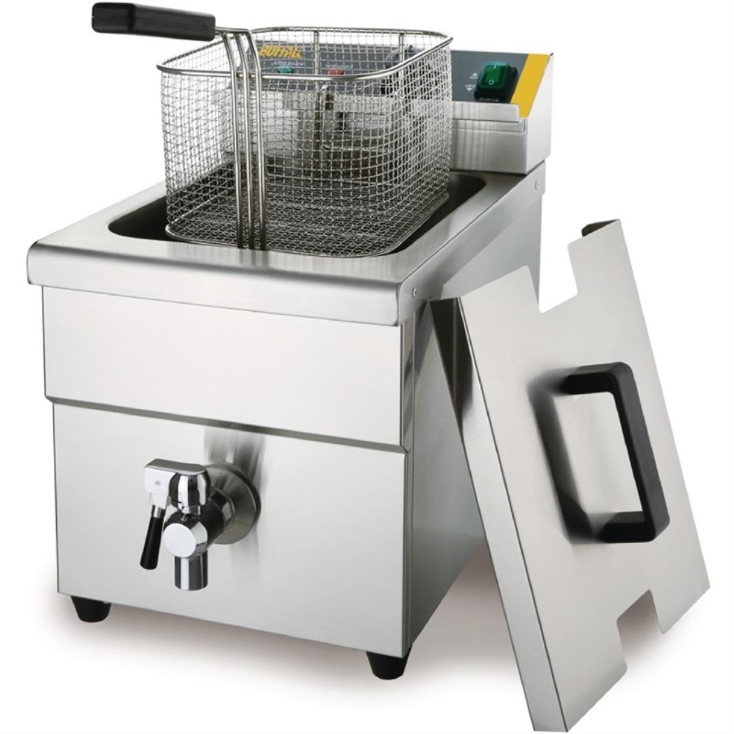 Friggitrice a induzione singola con un robusto alloggiamento in acciaio inossidabile. Con valvola di scarico per una facile pulizia.