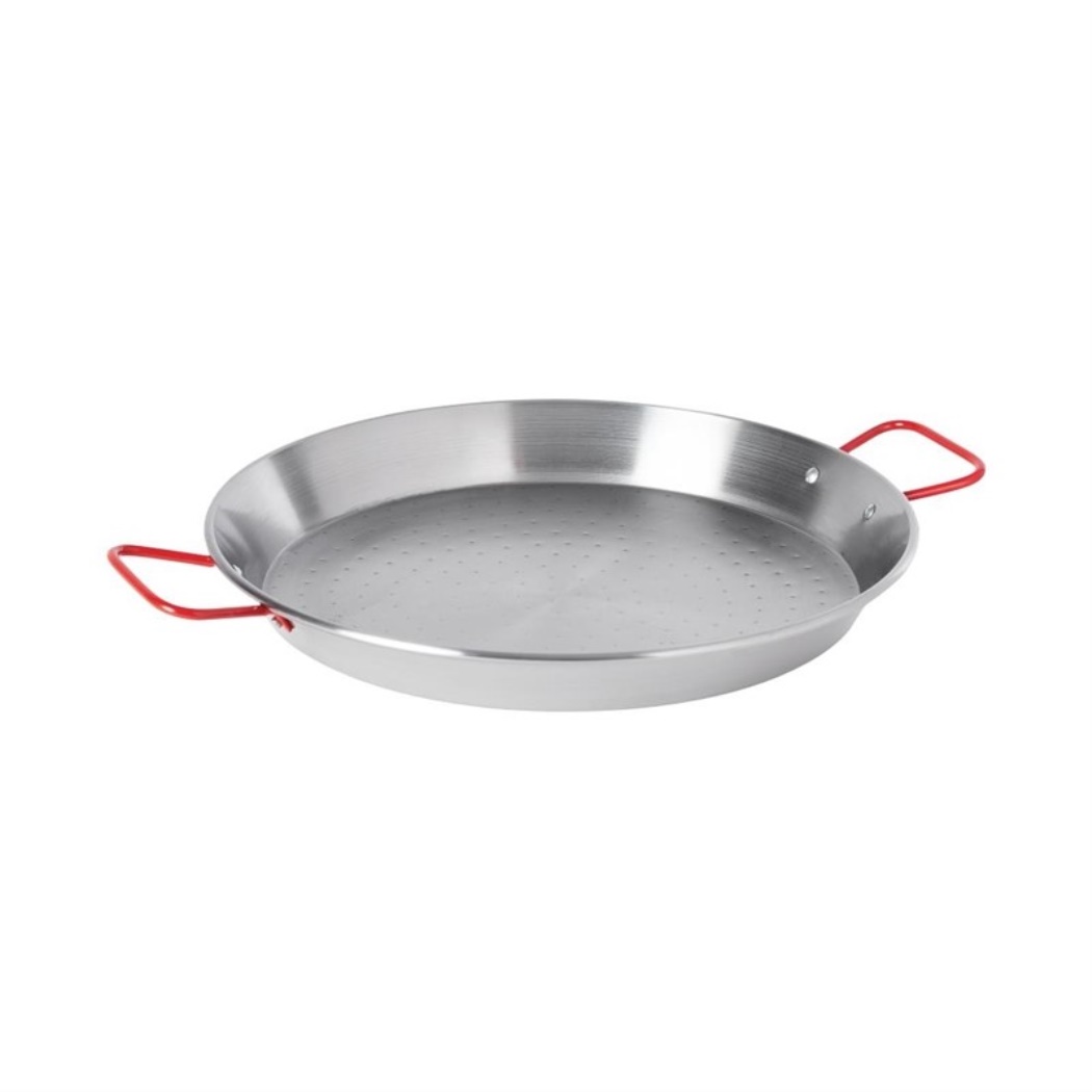 Padelle in acciaio paella con fondo rotondo. Adatto per gas e fuoco aperto.