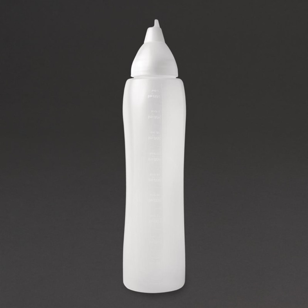 Bottiglie di spremere trasparenti per la salsa di dosaggio. Misura in ml e oz. Resiste a temperature da -40 ? C a + 90 ? C.