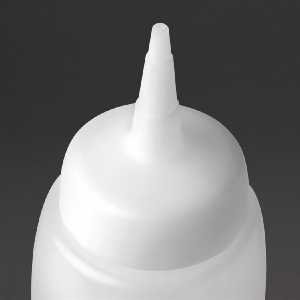 Bottiglie di spremere trasparenti per la salsa di dosaggio. Con ugelli intercambiabili.