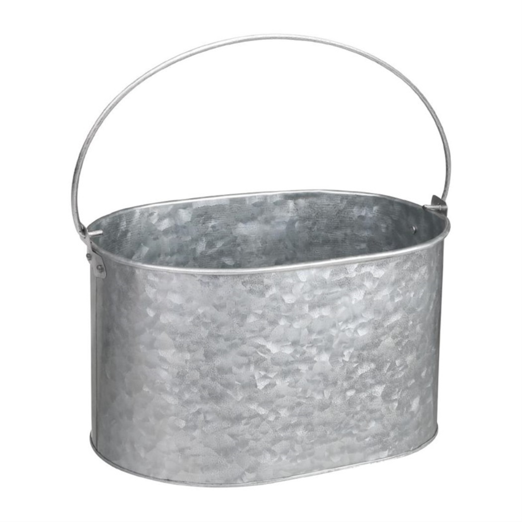 Vassoio galvanizzato per posate, tovaglioli e salse. Con divisorio rimovibile e manico in metallo.
