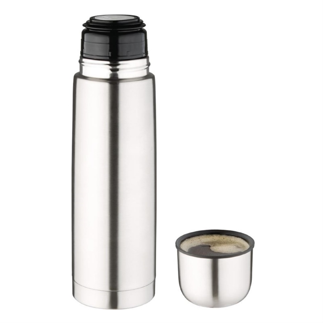 Bottiglia thermos in acciaio inossidabile in movimento. Adatto per bevande calde o fredde.