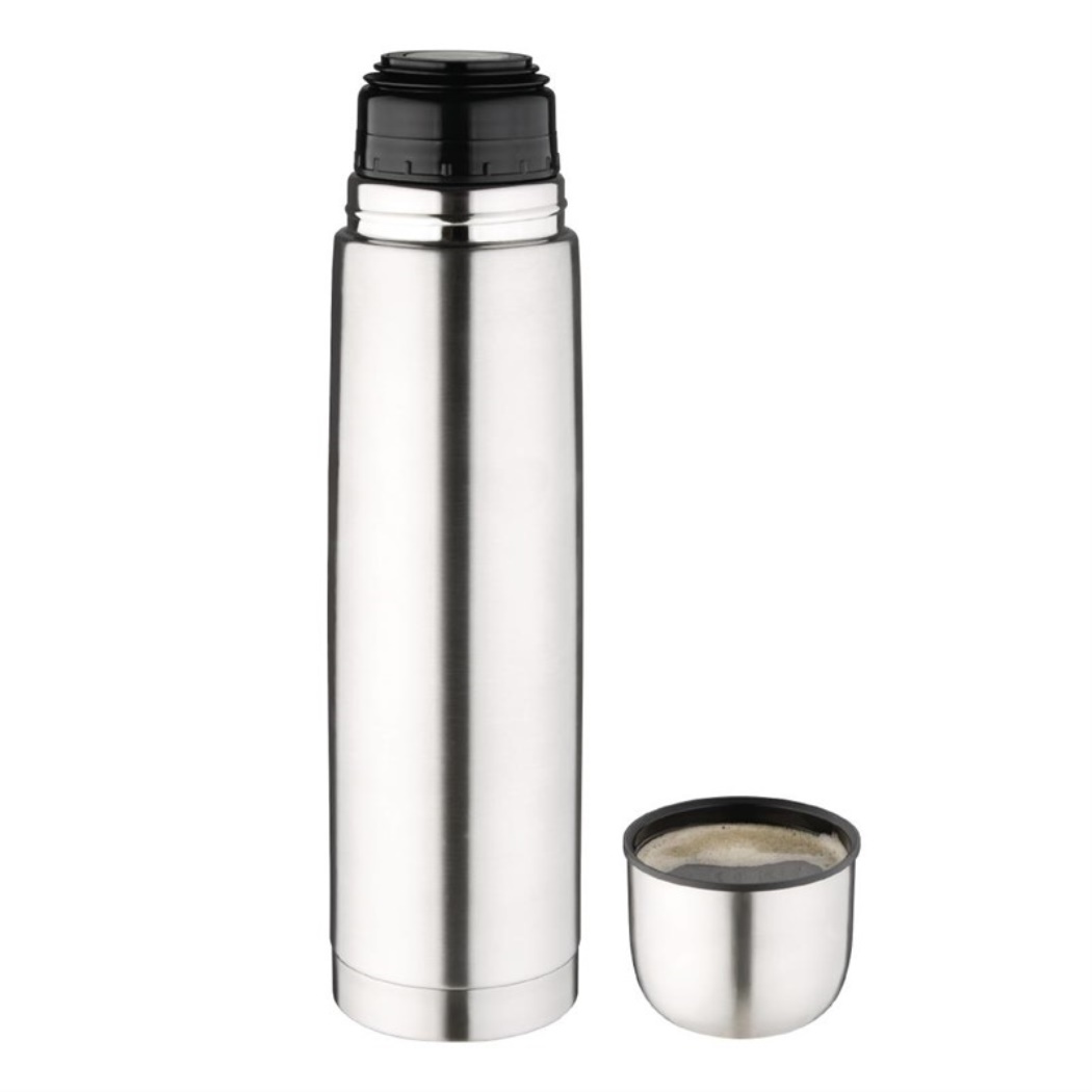 Bottiglia thermos in acciaio inossidabile in movimento. Adatto per bevande calde o fredde.