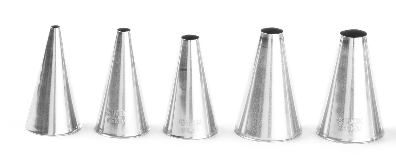 Set di 5 ugelli di varie dimensioni. Acciaio inox.