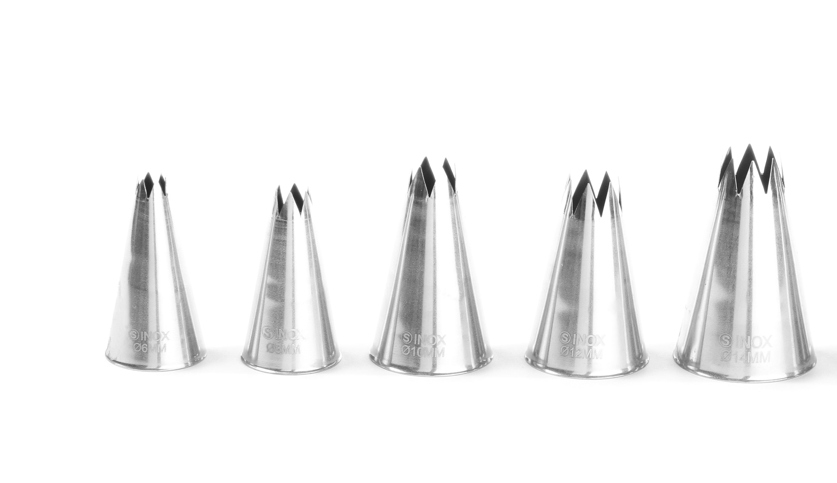 Set di 5 ugelli di varie dimensioni. Acciaio inox.