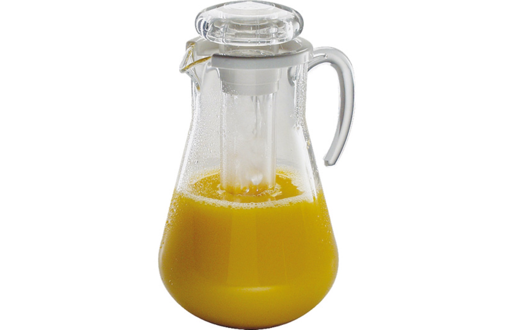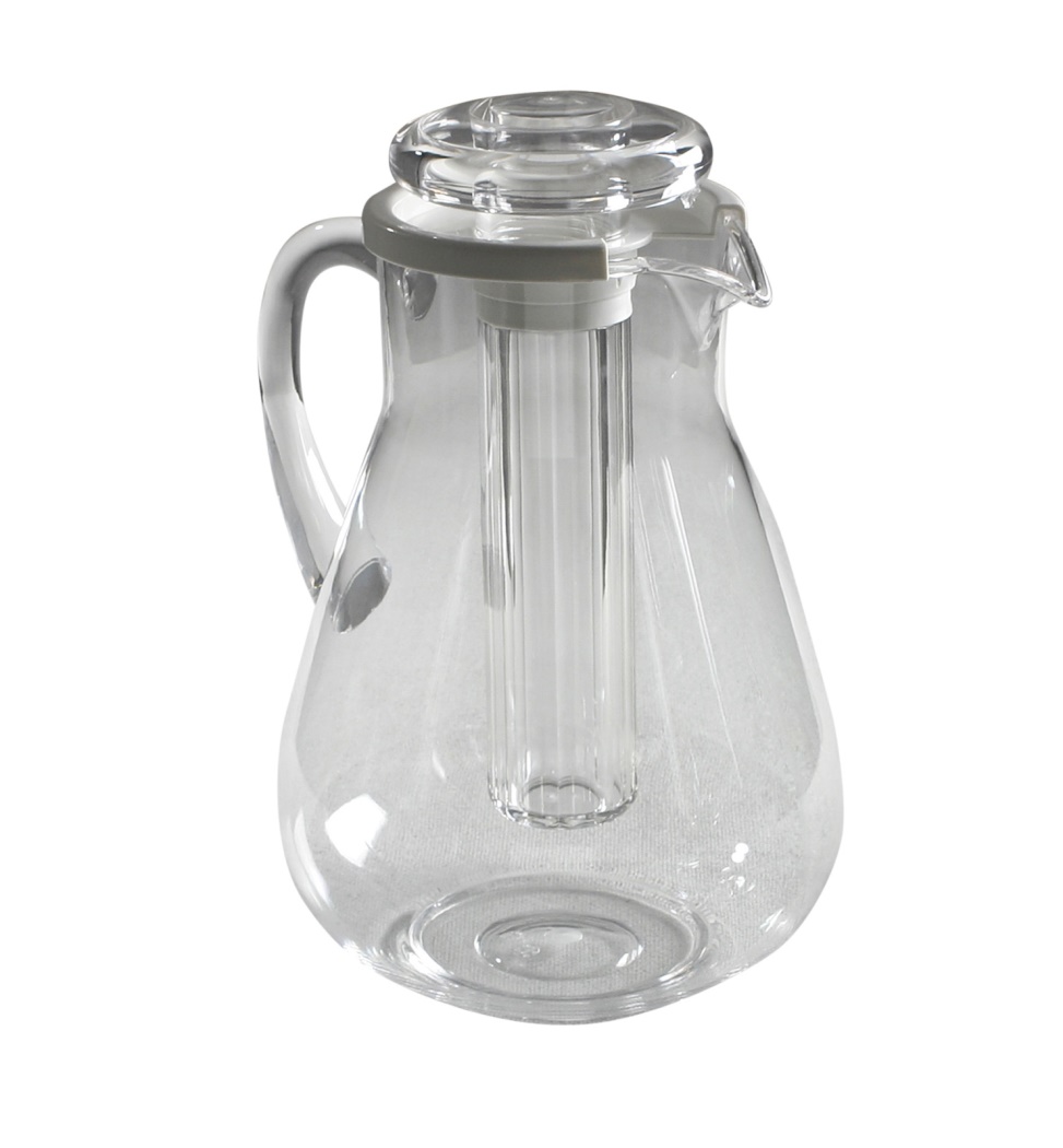 Modello a forma panciutaAntigraffio in plastica trasparente con coperchioMunito di tubo refrigerante con cubetti di ghiaccio- Dishwasher safe3,0 LiterØ150x(H)290 mm