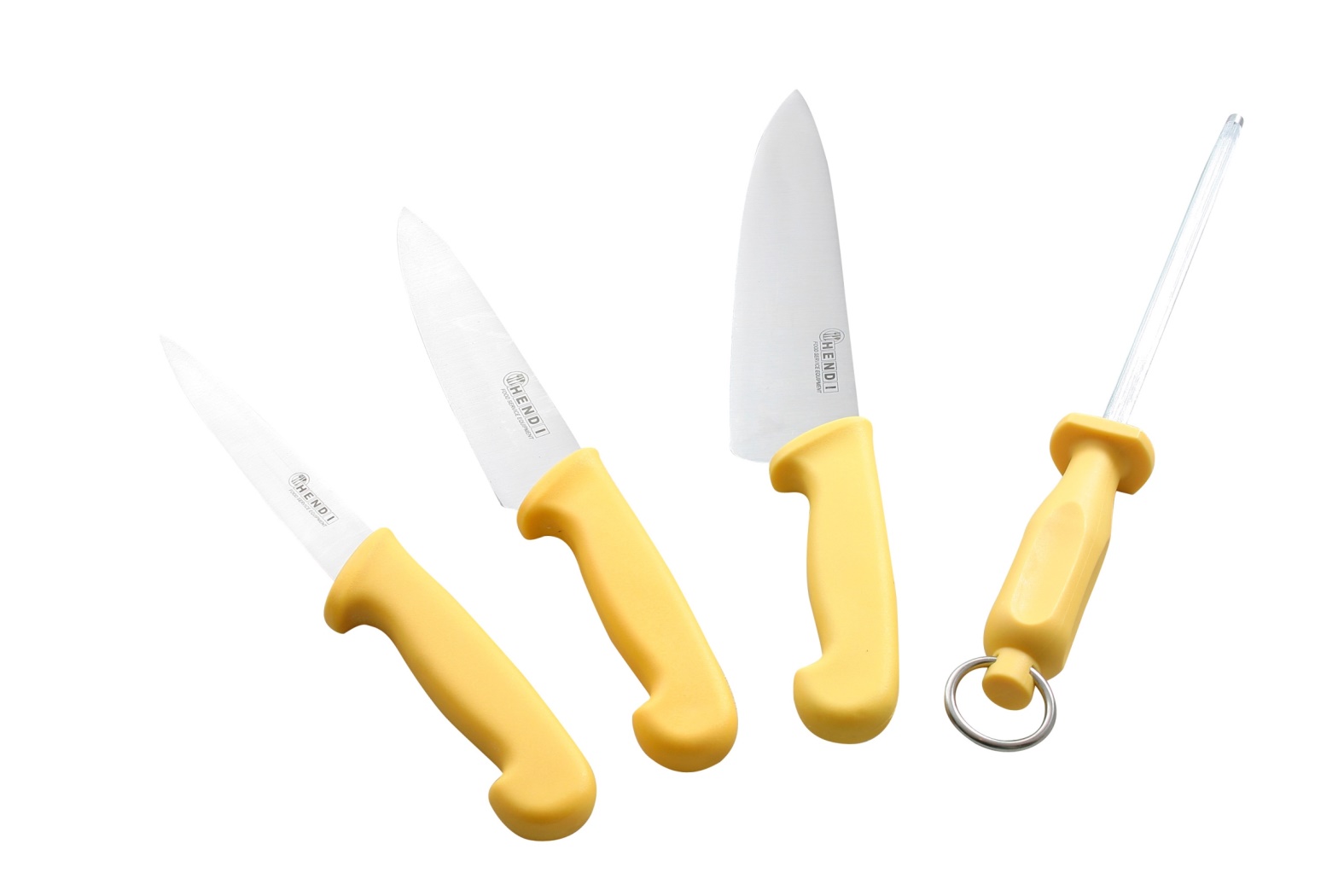 Il polipropilene ha linee guida HACCP. Ogni coltello è confezionato singolarmente in un blister in PET. Adatto per lavastoviglie. Codice colore HACCP. Polipropilene. Acciaio inossidabile