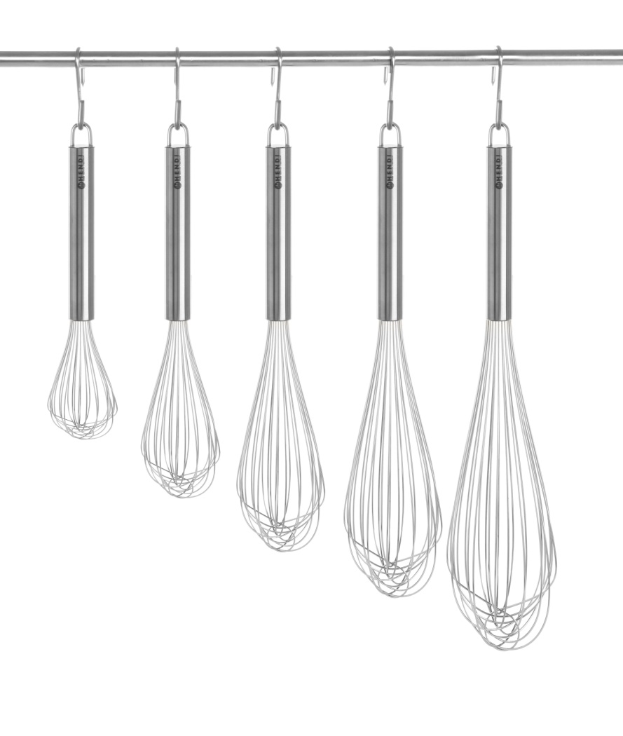 12 fili armonici. Manico in acciaio con occhiello. Acciaio inox. Dishwasher safe. New.