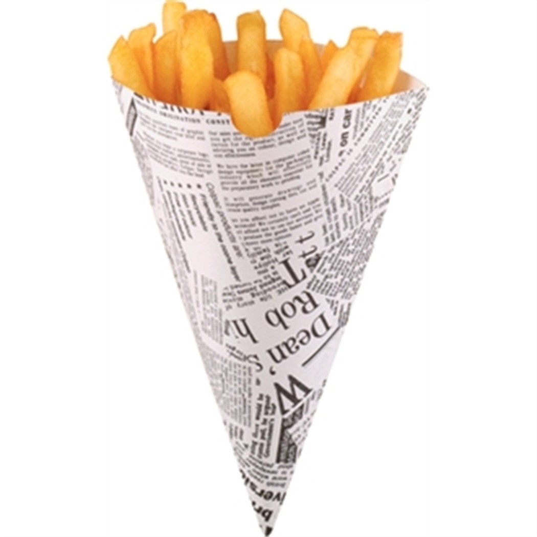 Set 1000 coni di carta per patatine fritte - Colpac - Ø 15cm x H 18.3cm - carta biodegradabile con stampa giornale - CE230