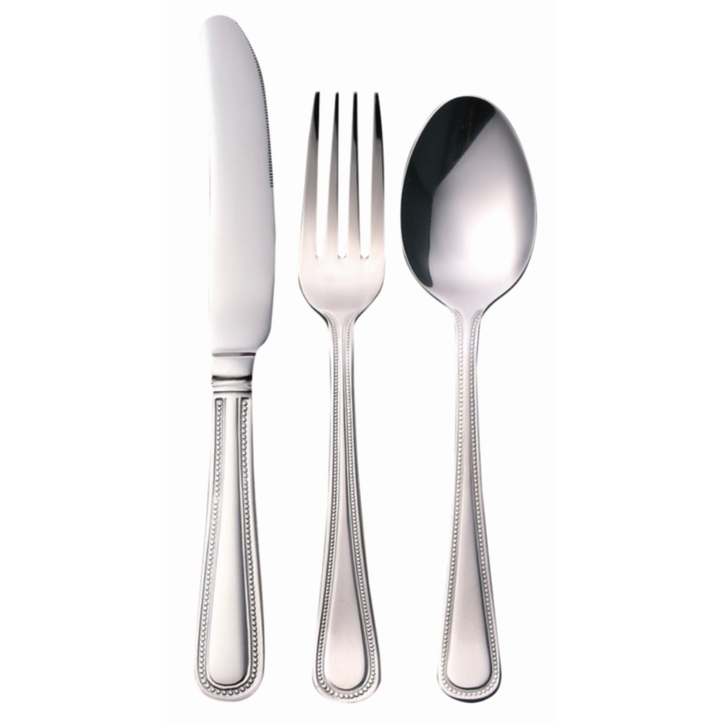 Posate in acciaio inossidabile 18/0 lucido con bordo a forma di perla.