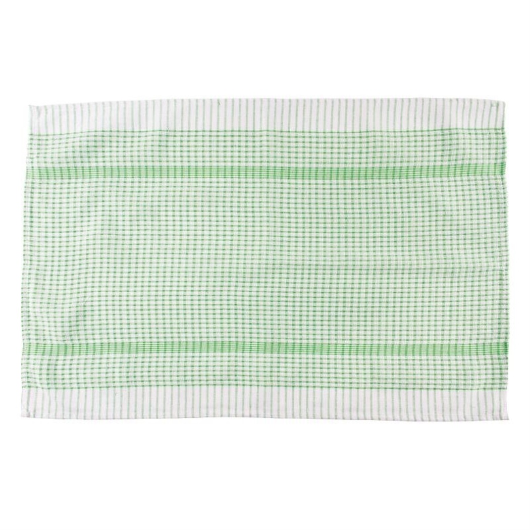 Strofinacci forte per uso generale. Qualità 95% cotone e 5% poliestere. Dimensioni 75x50 cm. Verde. 95% cotone 5% poliestere. 10 pezzi Dimensioni: 762 x 508 mm Materiale: 95% cotone e 5% poliestere Non adatto per l'asciugatrice
