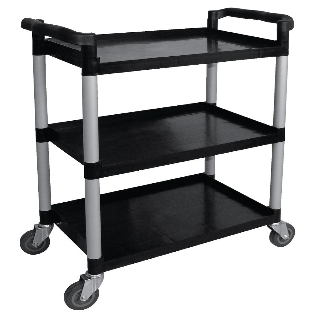 Robusto carrello per servire in polipropilene, adatto a molti reparti nel settore dell'ospitalit?. Dotato di robuste ruote di cui 2 frenate. Posate e cestino dei rifiuti disponibili separatamente.