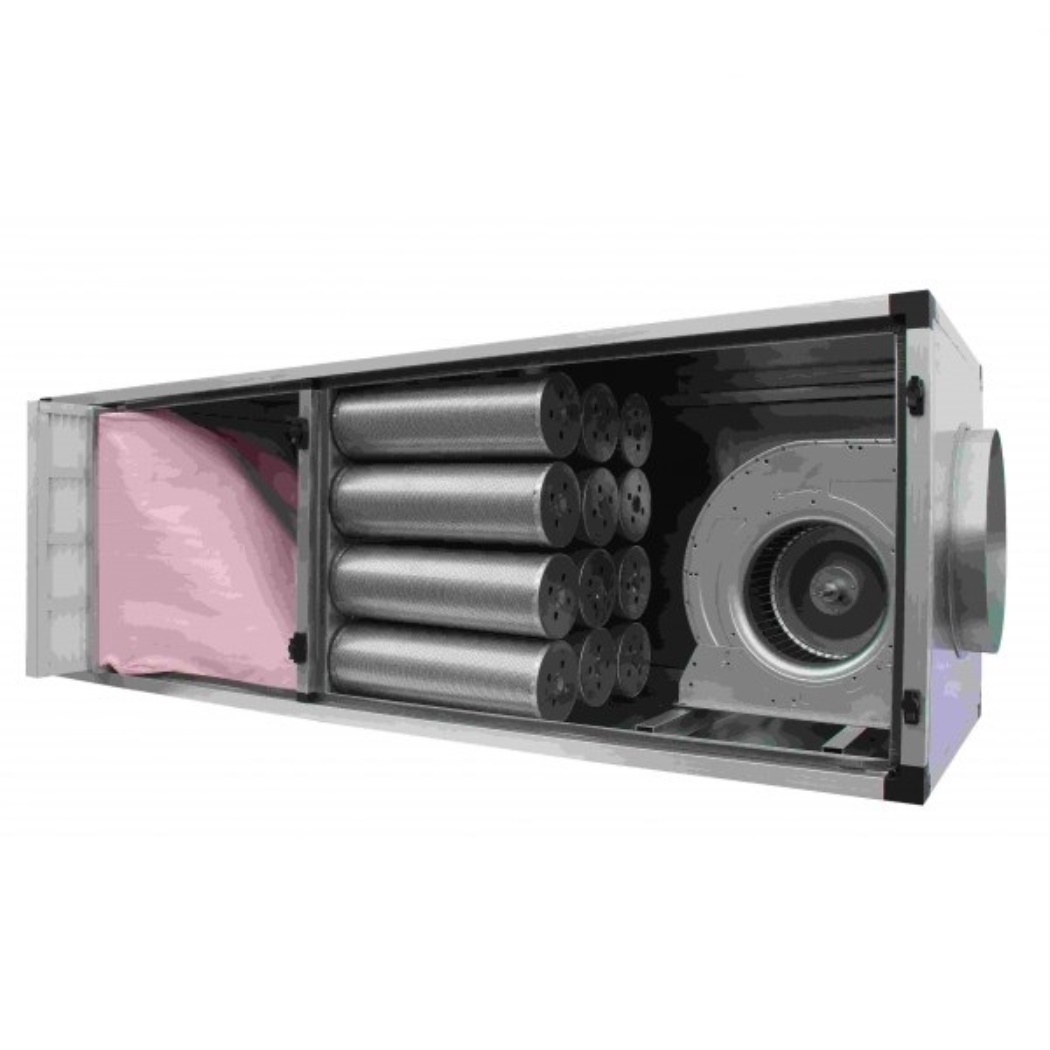 Include: filtro a scatola, filtro a sacco, 24 cartucce di carbone e motore di aspirazione Capacità del motore di aspirazione: 4800 m3 / h Dim. (Bxdxh): 205x97x67 cm Valore di connessione: 230V / 1100W Peso: 170 kg