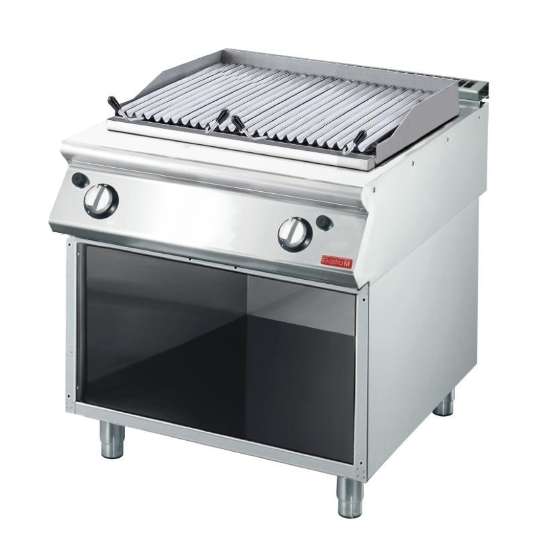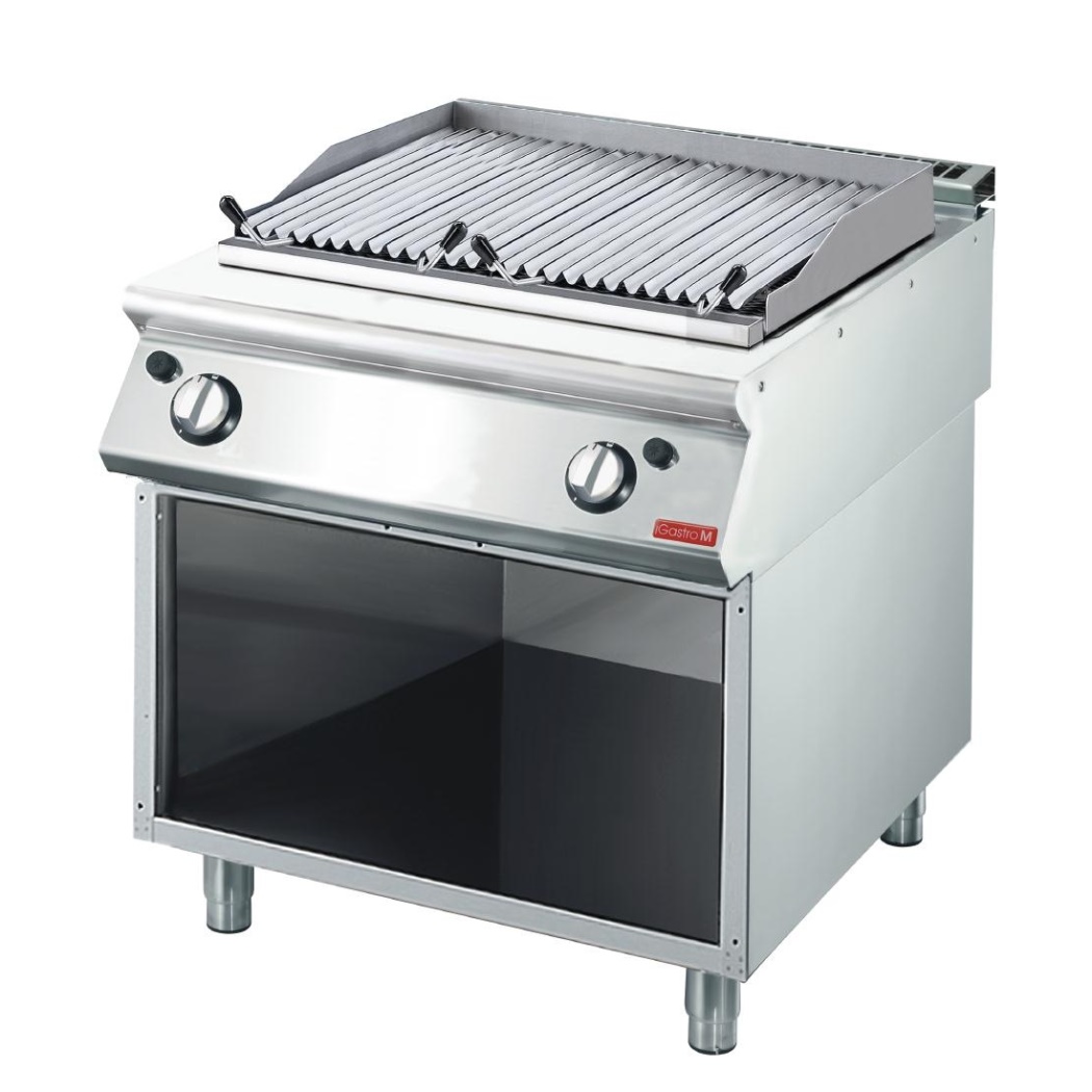 Griglia a pietra lavica a gas, adatta per gas metano, con griglia grill, accensione piezoelettrica, bruciatori in acciaio inox, vaschetta per l'acqua e termocoppia. Viene fornito completo con pietre laviche.